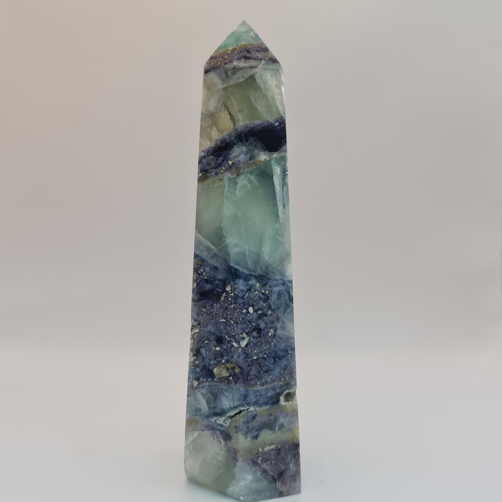 Fluorite is known as a highly protective and stabilizing stone that cleanses the mind, body, and spirit. It promotes mental clarity and improves creativity, concentration, and memory.