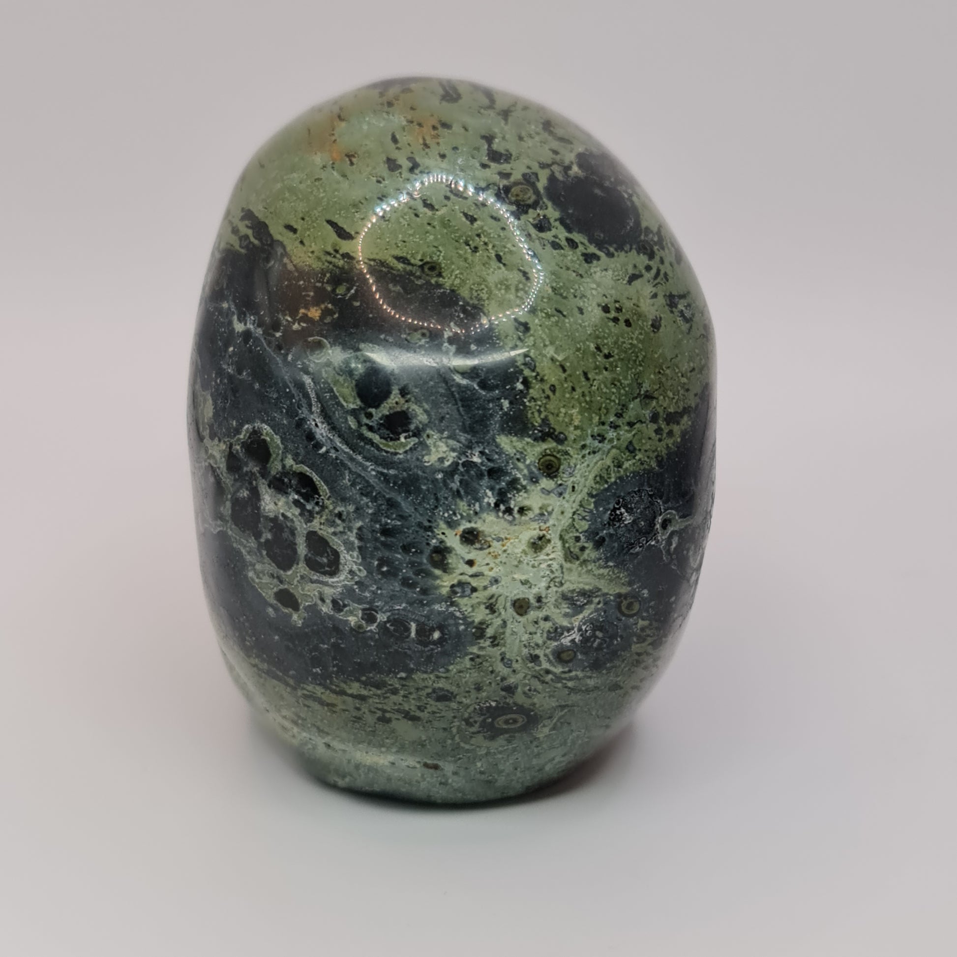 Kambaba Jasper is known as a stone of peace and tranquility. It is very grounding due to its strong connection to the Earth. It helps to eliminate feelings of uncertainty about the future and fear of the unknown, and to increase one's confidence in learning new skills and knowledge.