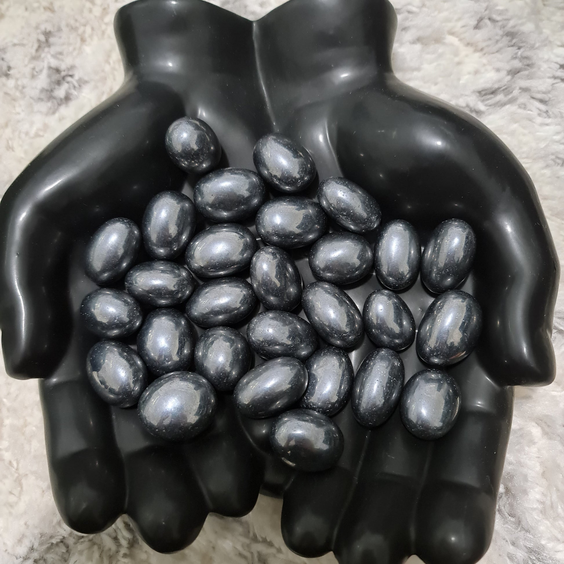 Terahertz is a man-made stone that emits far-infrared and negative ion energy. The far-infrared energy helps promote metabolism, improve blood circulation, and ease muscle pain. The negative ion energy protects the body from harmful pollutants.